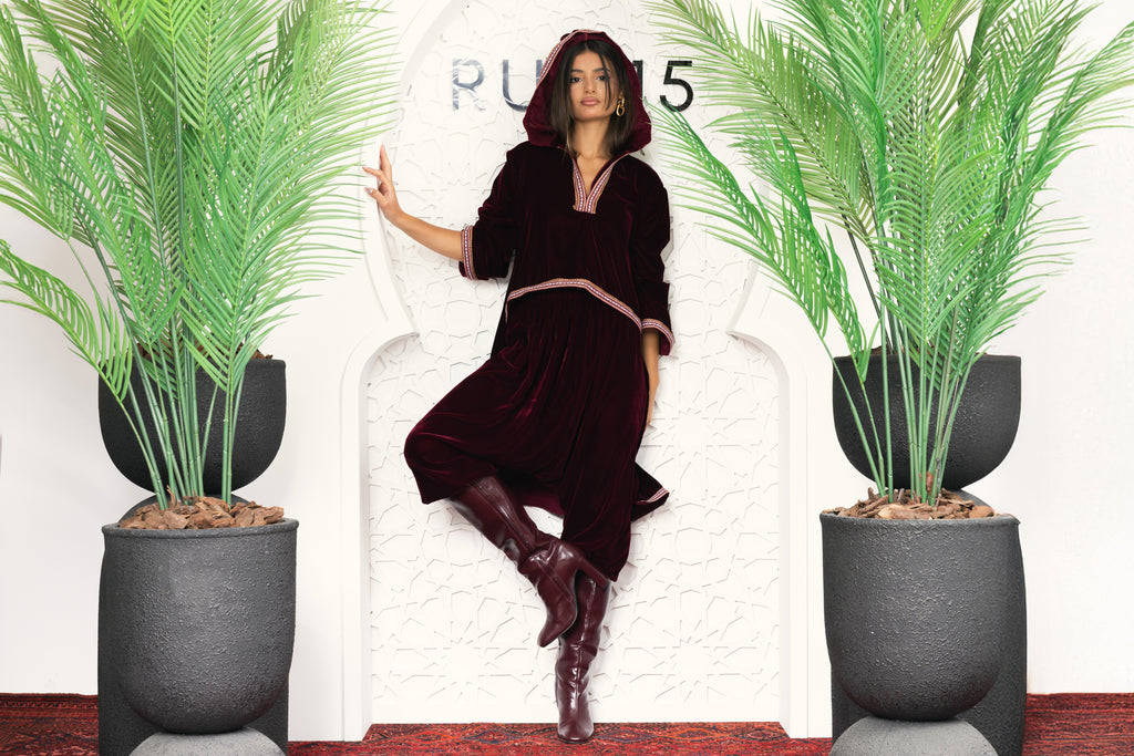 burgundy velvet shirwal with a matching marrocan top a classic timeless piece